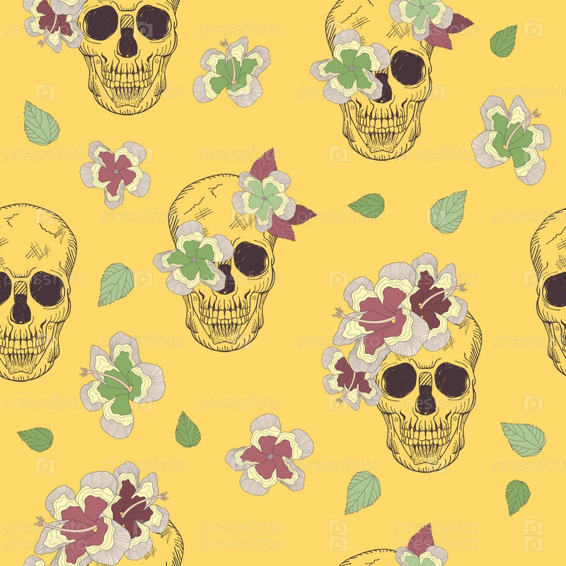 Фон с черепами и цветами