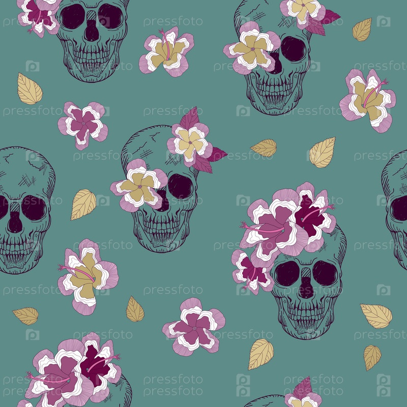 Фон с черепами и цветами