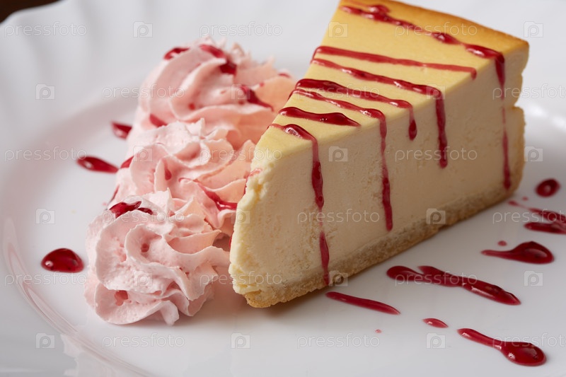 Чизкейк с малиновым кремом и сиропом