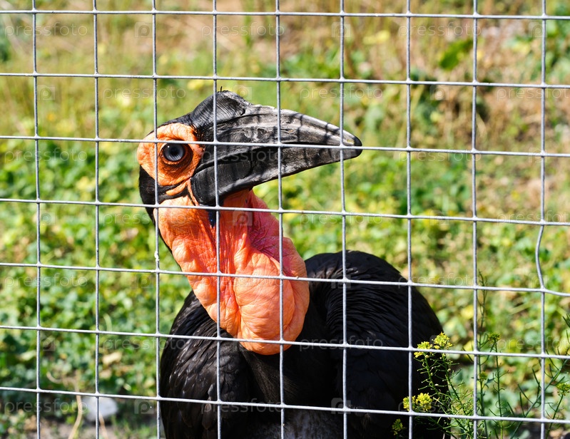 Африканский рогатый ворон в Московском зоопарке