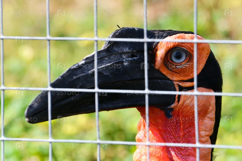 Африканский рогатый ворон в Московском зоопарке