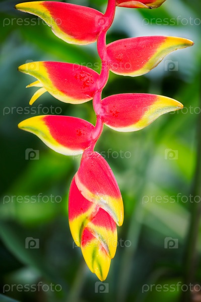 Цветок геликония на зеленом фоне