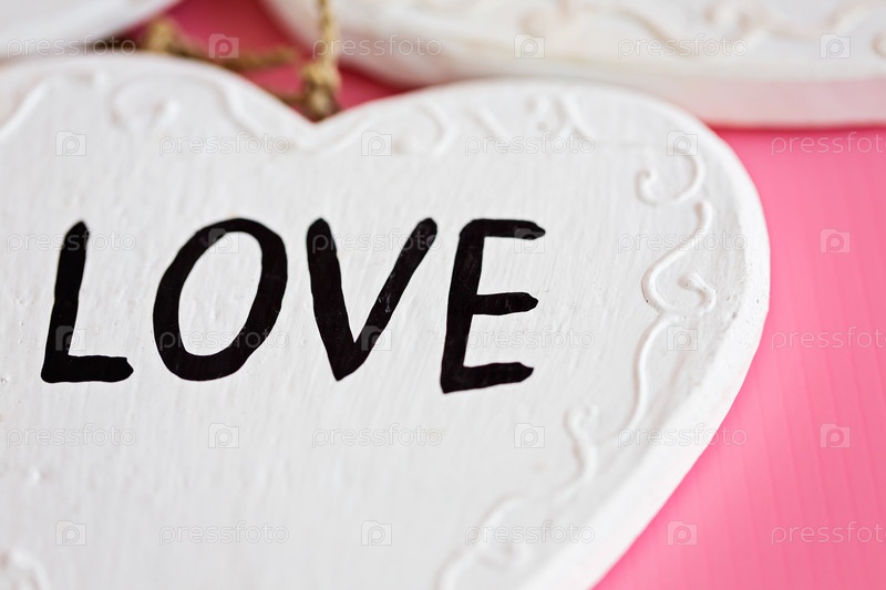 Деревянные белые сердца на розовом фоне