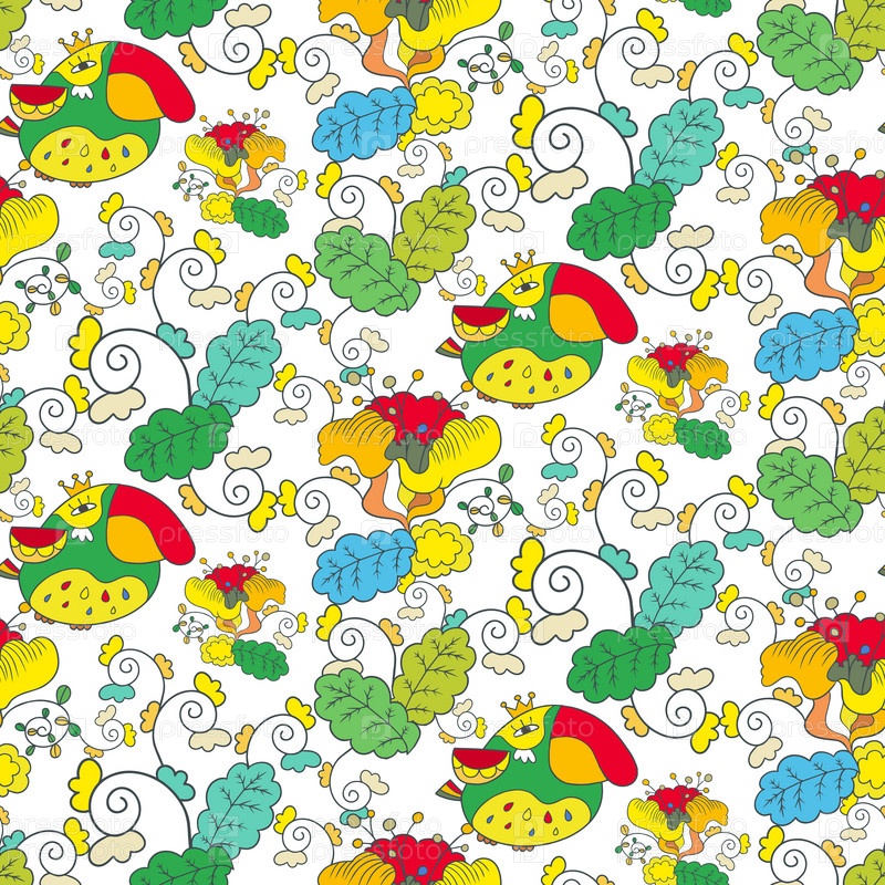 Бесшовный фон с цветами и птицами