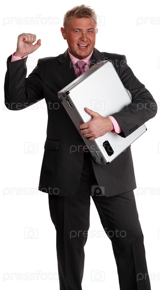 Деловой мужчина с кейсом на белом фоне