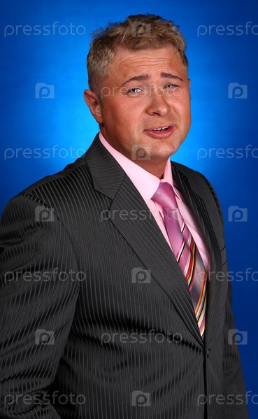 Мужчина в деловом костюме на синем фоне