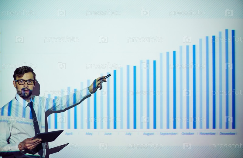 Бизнесмен показывает на график