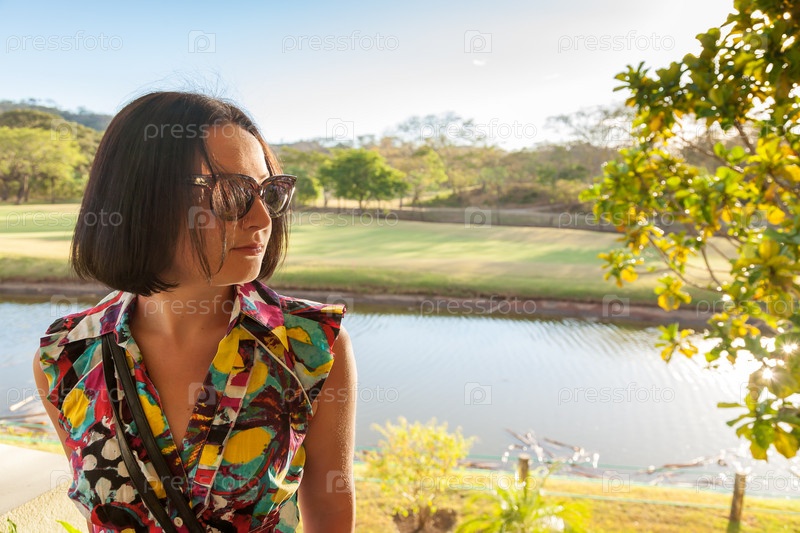Молодая женщина в солнцезащитных очках на природе