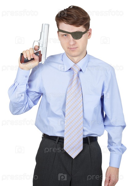 Портрет человека, вооруженного пистолетом на белом фоне