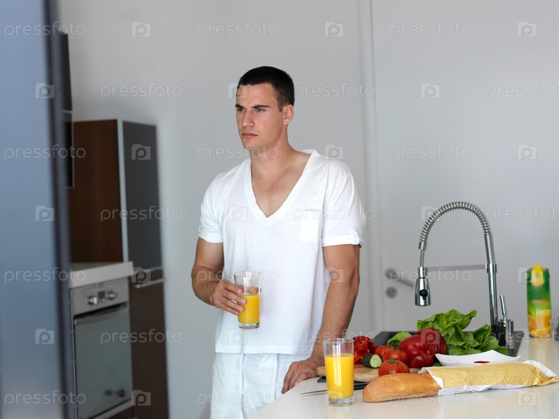 Молодой человек пьет сок