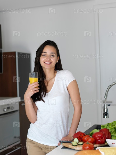 Женщина пьет сок