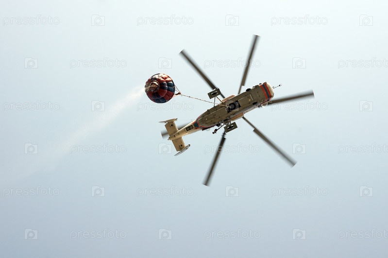 Вертолет с водосливным устройством для тушения пожара