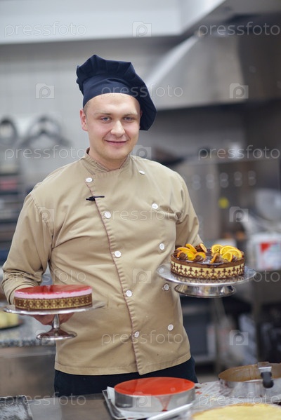 Шеф-повар готовит торт на кухне