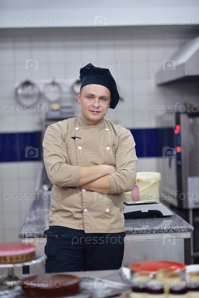 Шеф-повар готовит торт на кухне