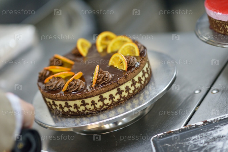 Шеф-повар готовит торт на кухне