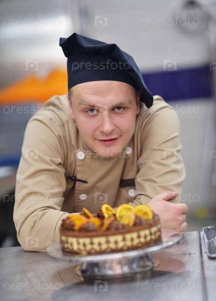 Шеф-повар готовит торт на кухне