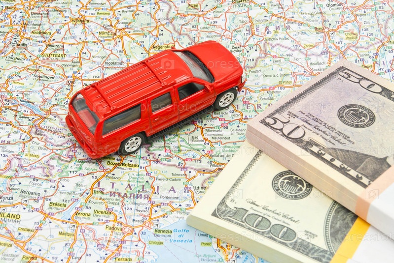 Автомобиль и деньги на карте