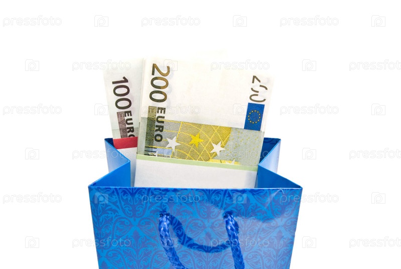 Синий пакет с банкнотами