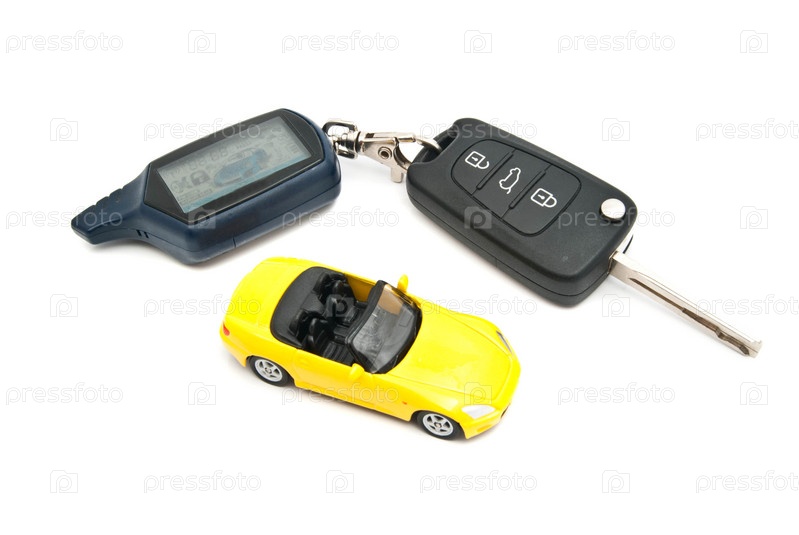 Автомобиль и ключ на белом фоне