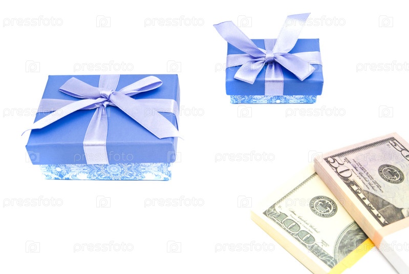 Две подарочные коробки и банкноты