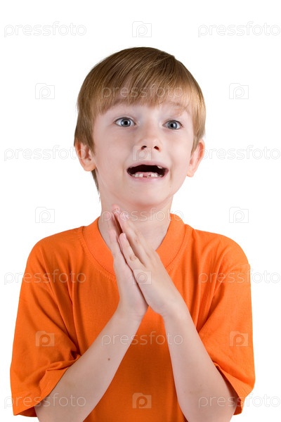 Взволнованный мальчик на белом фоне