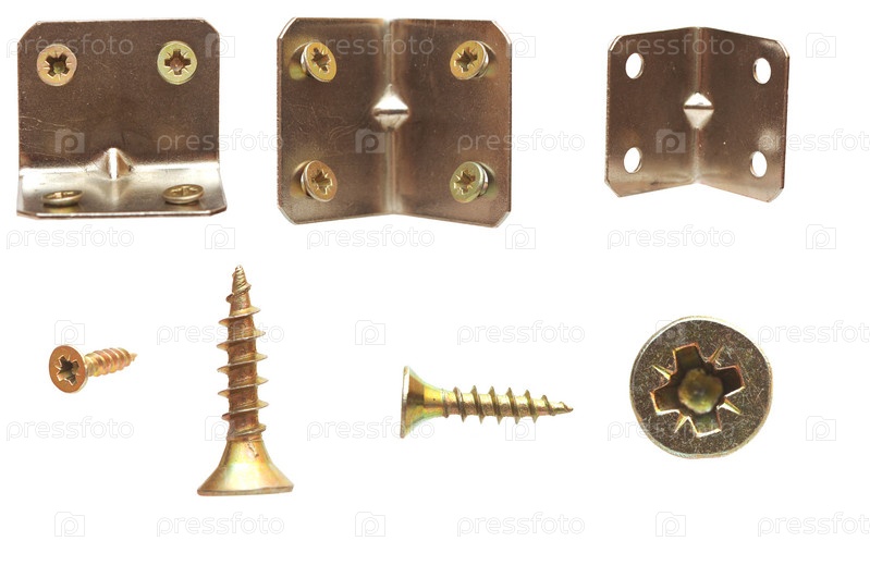 Винты и уголки, изолированы на белом фоне