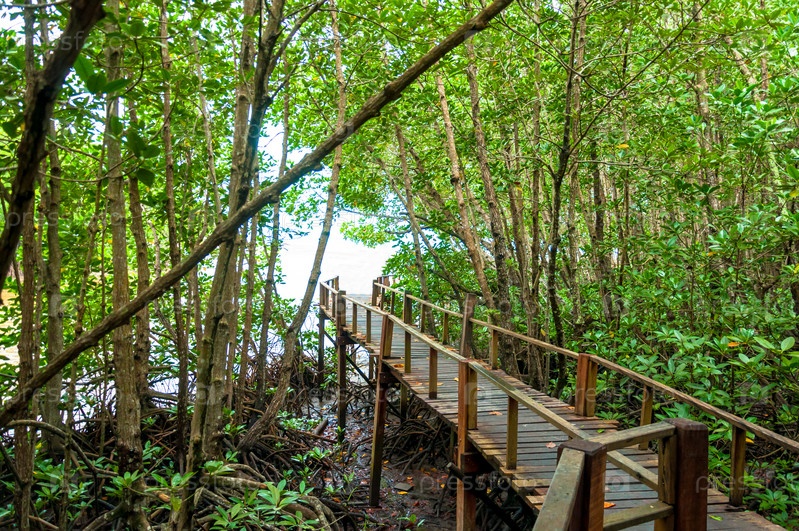 Деревянный коридор в мангровом лесу
