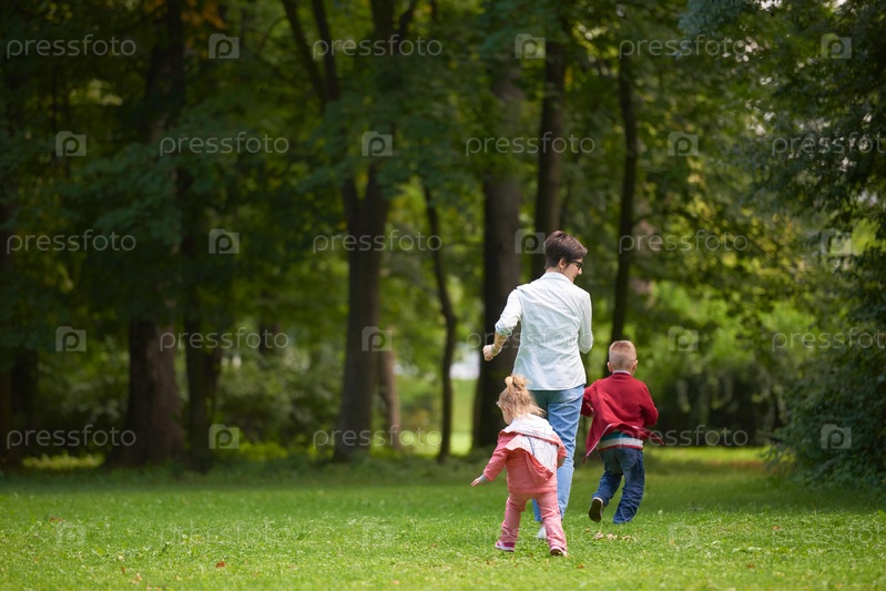 Семья отдыхает в парке