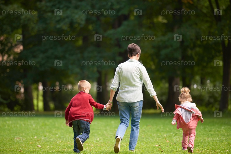 Семья отдыхает в парке