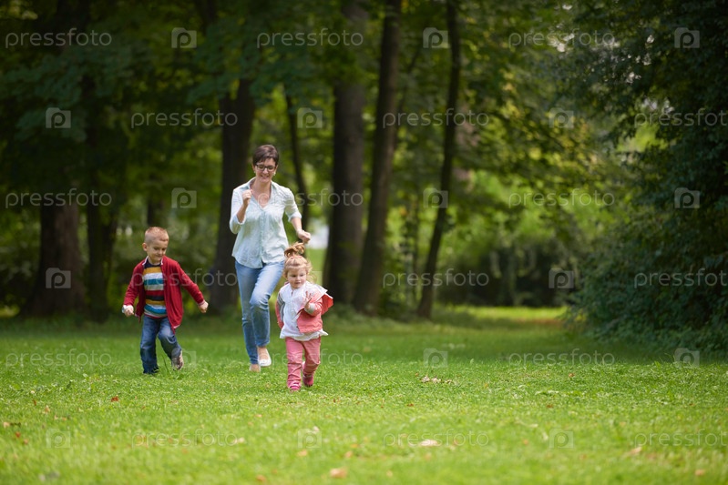 Семья отдыхает в парке