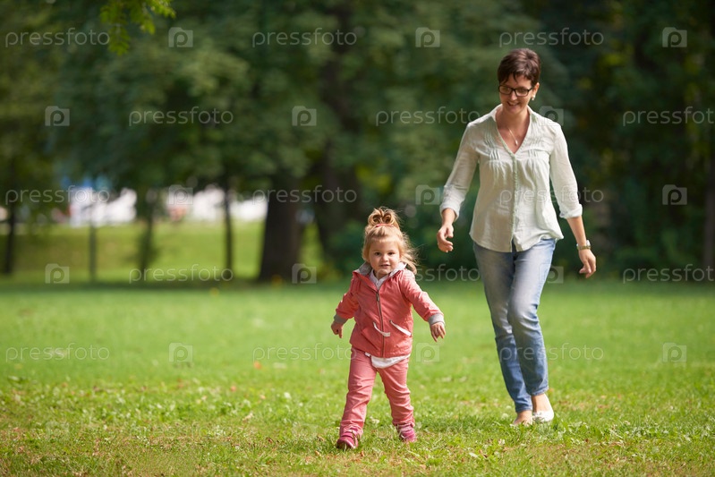 Счастливая семья играет в парке