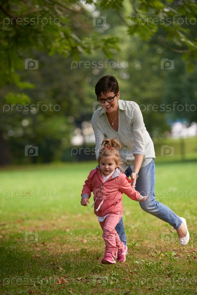 Счастливая семья играет в парке