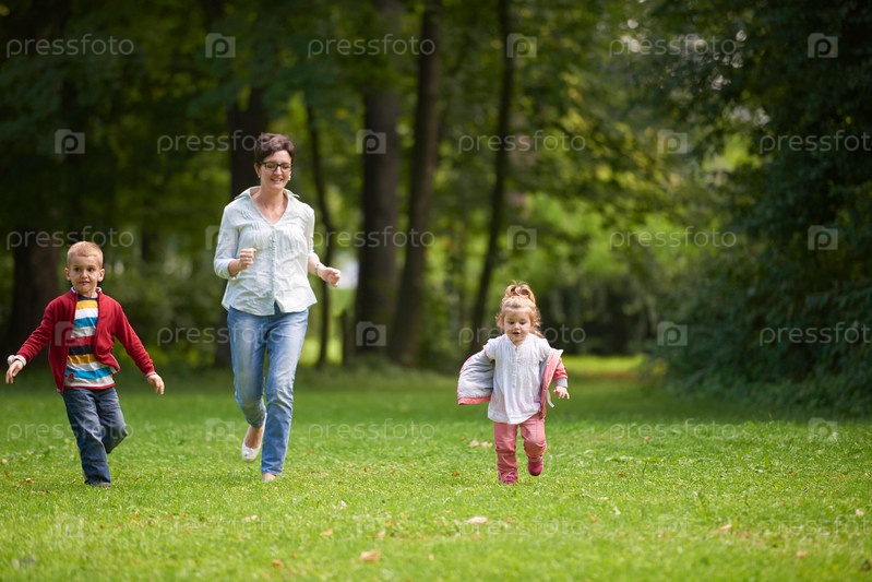Счастливая семья играет в парке