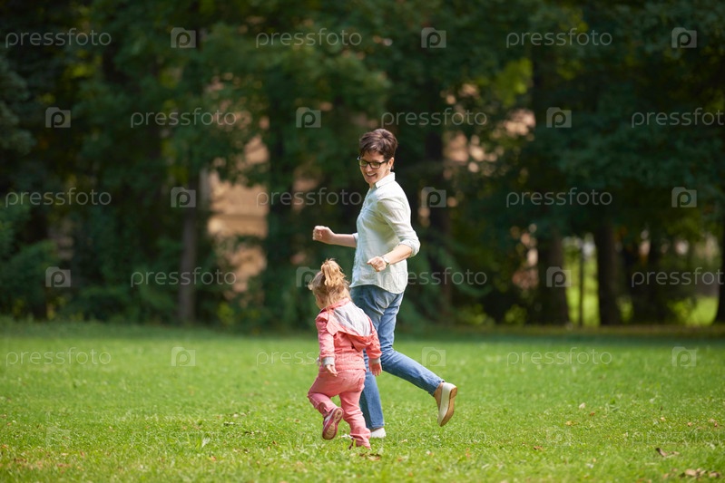 Счастливая семья играет в парке
