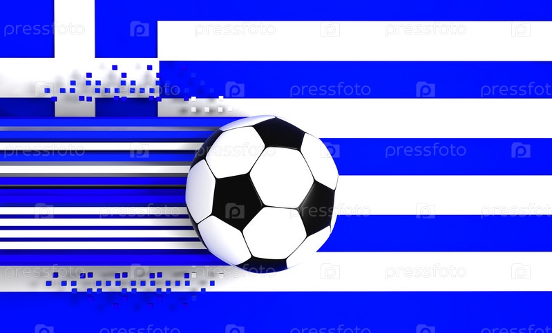 Футбольный мяч на фоне флага Греции