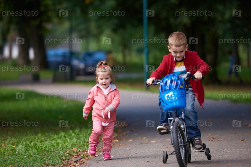 Мальчик и девочка на велосипеде