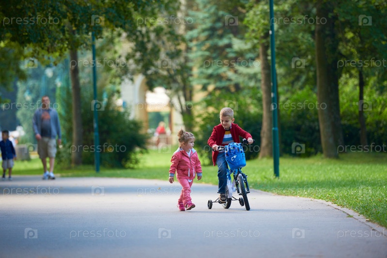Мальчик и девочка на велосипеде