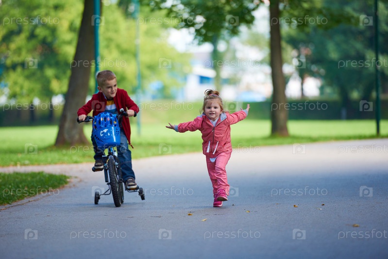 Мальчик и девочка на велосипеде