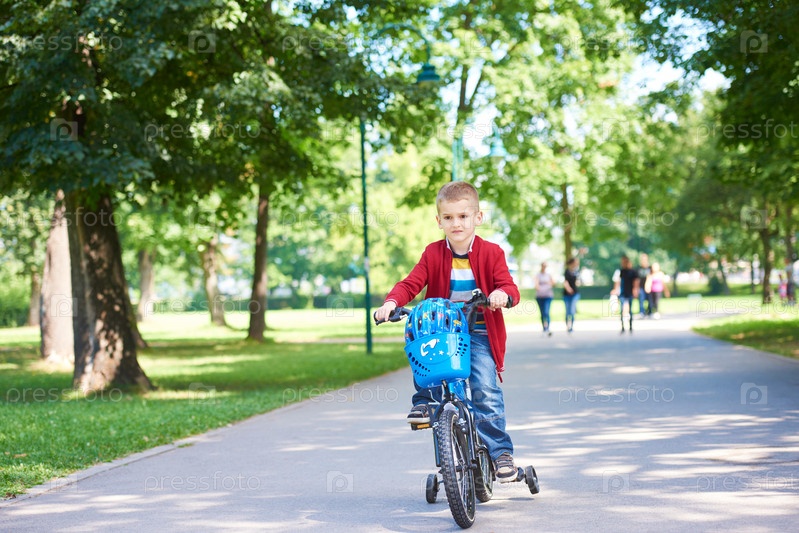 Мальчик на велосипеде в парке