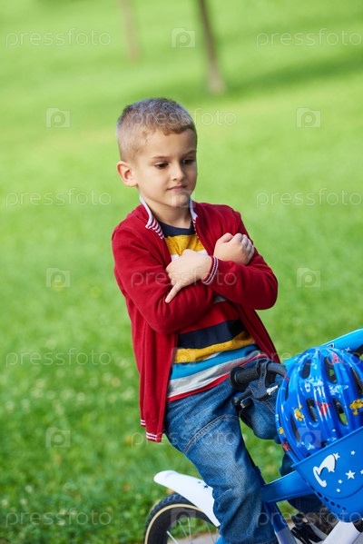 Мальчик на велосипеде в парке