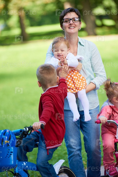 Счастливая семья играет в парке