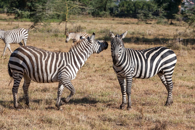 Зебры на лугу