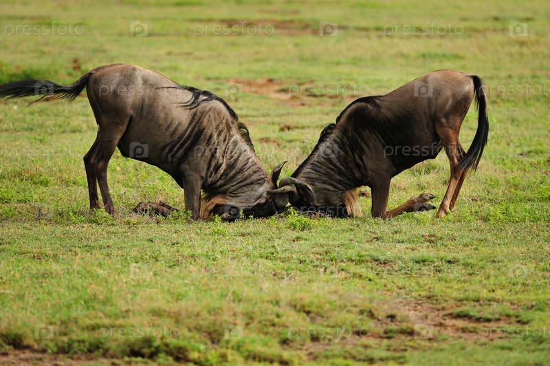Антилопы гну, схватка между двумя взрослыми самцами