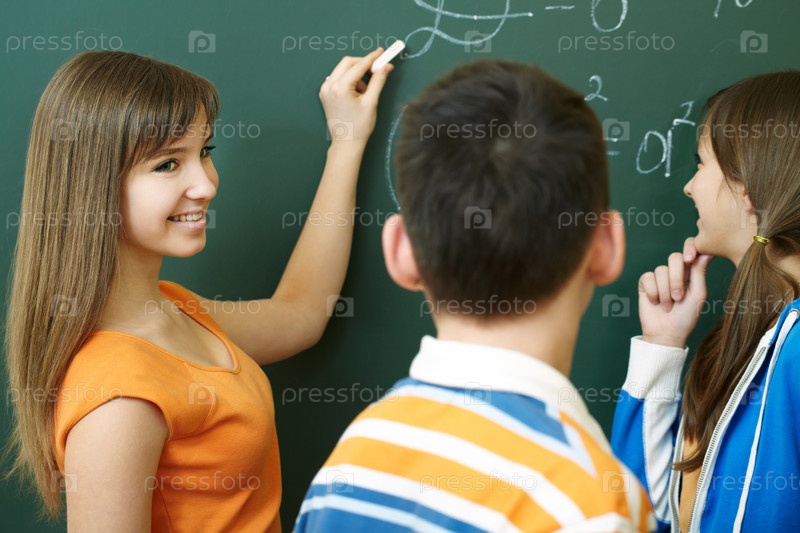Ученики стоят у школьной доски