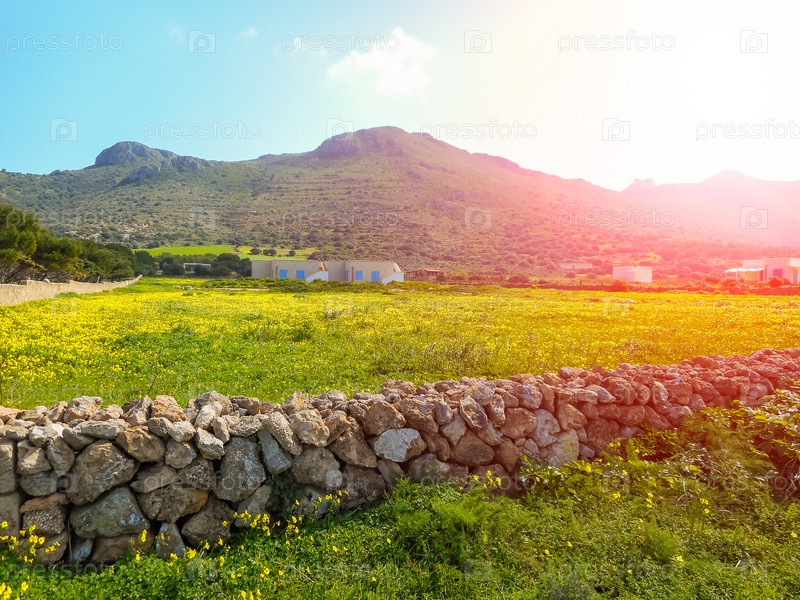 Цветущий луг весной на острове. Фавиньяна, Сицилия