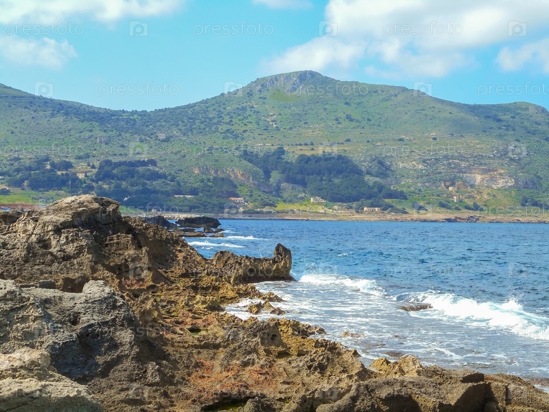 Вид скалистого берега острова Сицилия