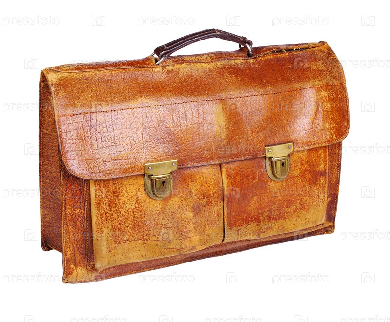 Устаревший грязный пятнистый выветрившийся ретро портфель изолирован