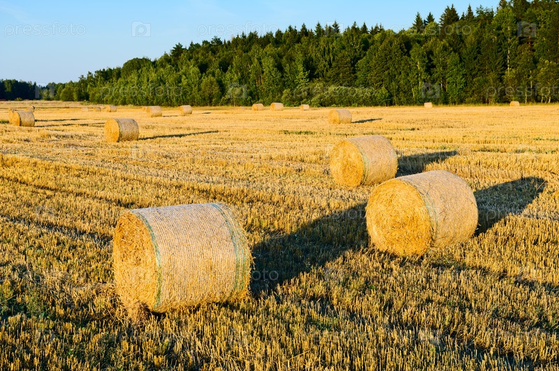 Стога сена на скошенном поле, солнечный осенний день
