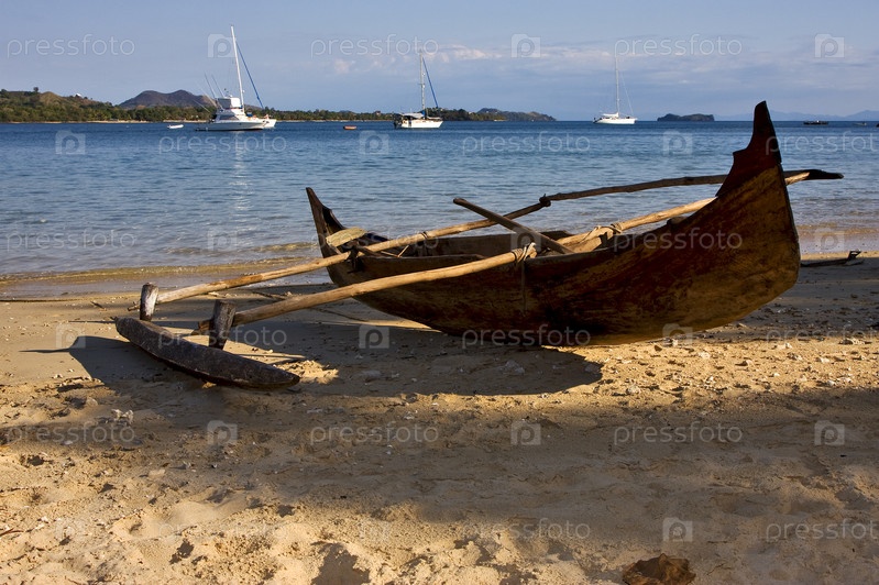Лодка на берегу в Мадагаскарены и береговой линии