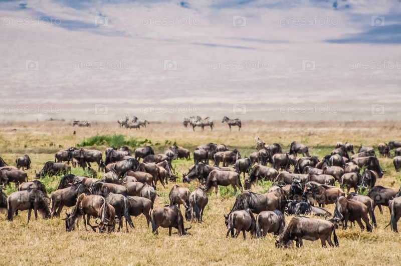 Стадо антилоп гну в кратере Ногоронгоро